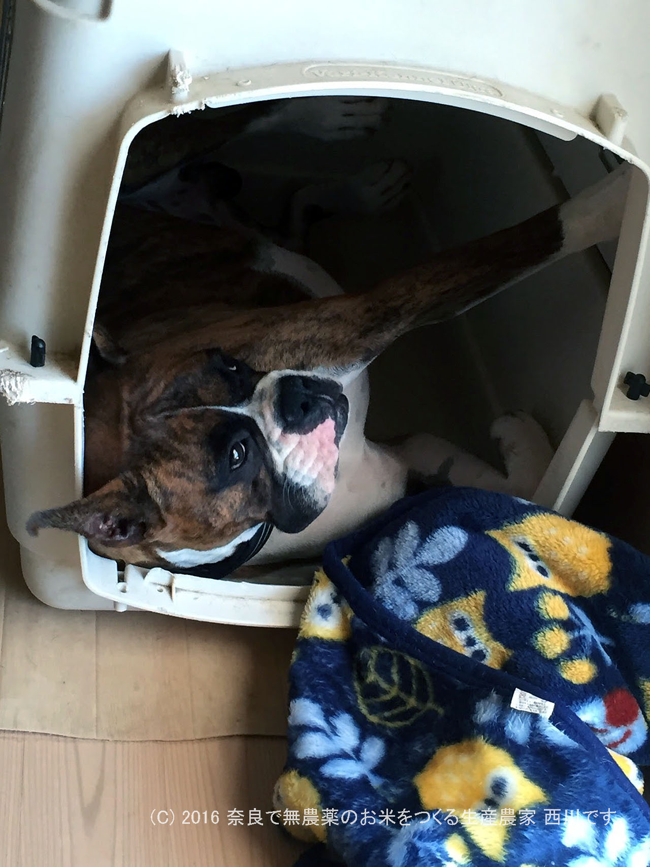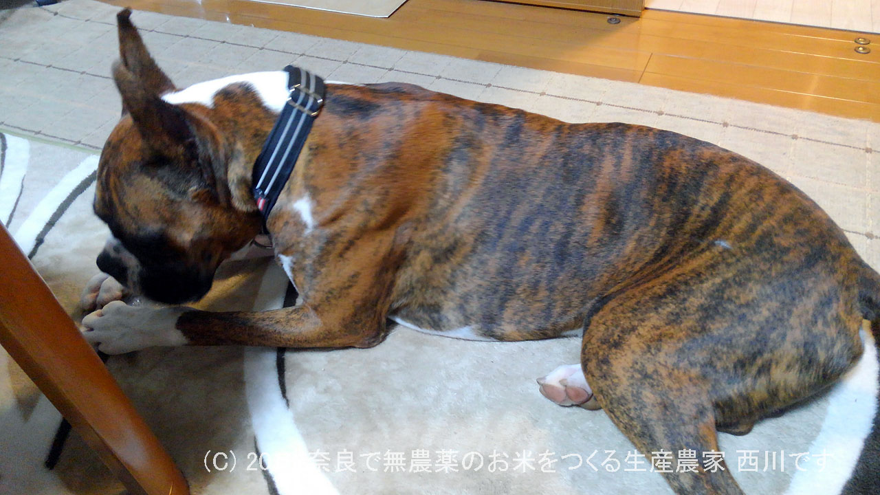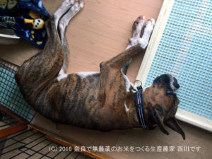 ほんとはここが好きなんやけどね。秋になったらまた思う存分走りまわっておくれ、サスケ君。
